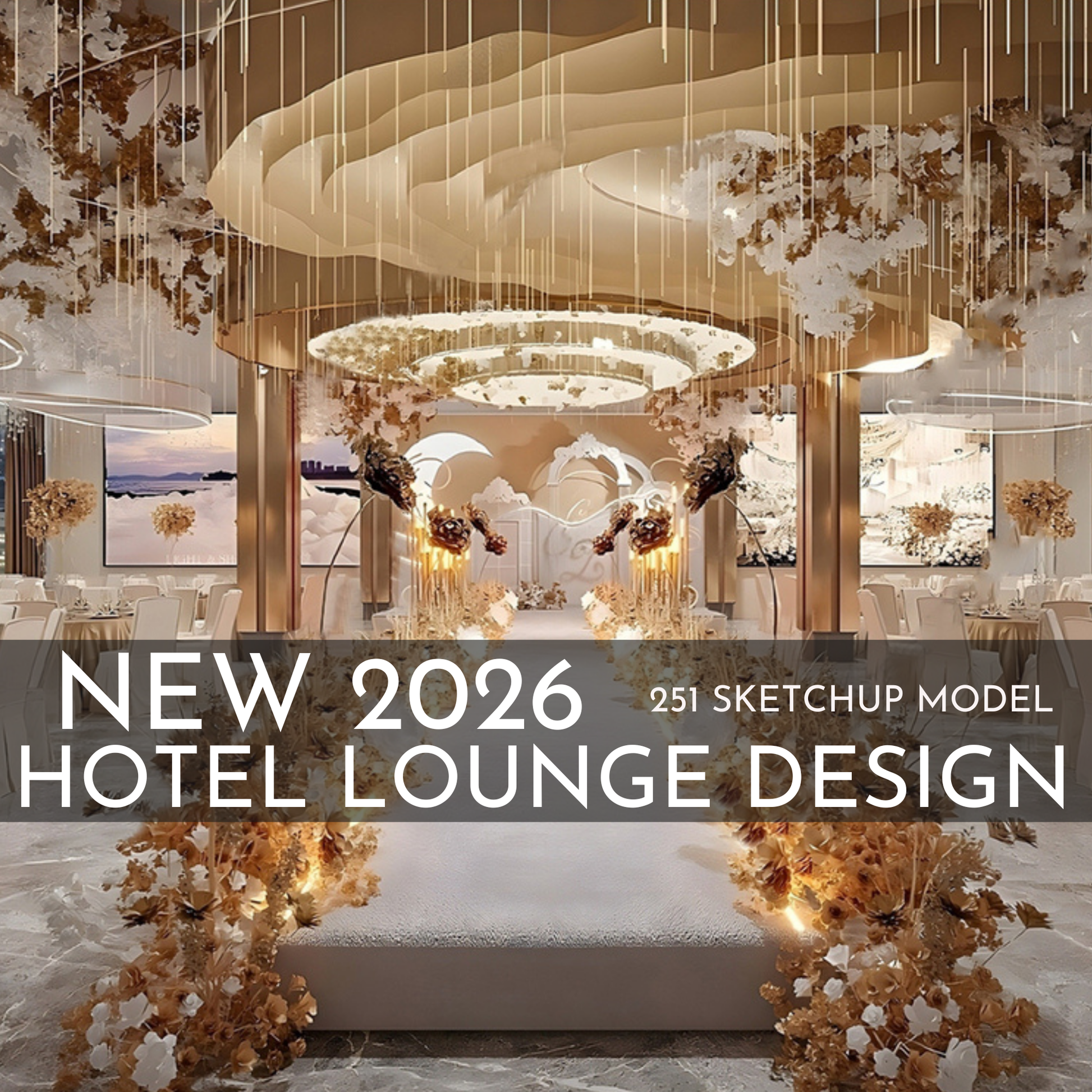 A professional Hotel Lounge SketchUp 3D Model Bundle featuring 251 high-quality interior assets, ideal for hospitality design, client presentations, and fast concept development.